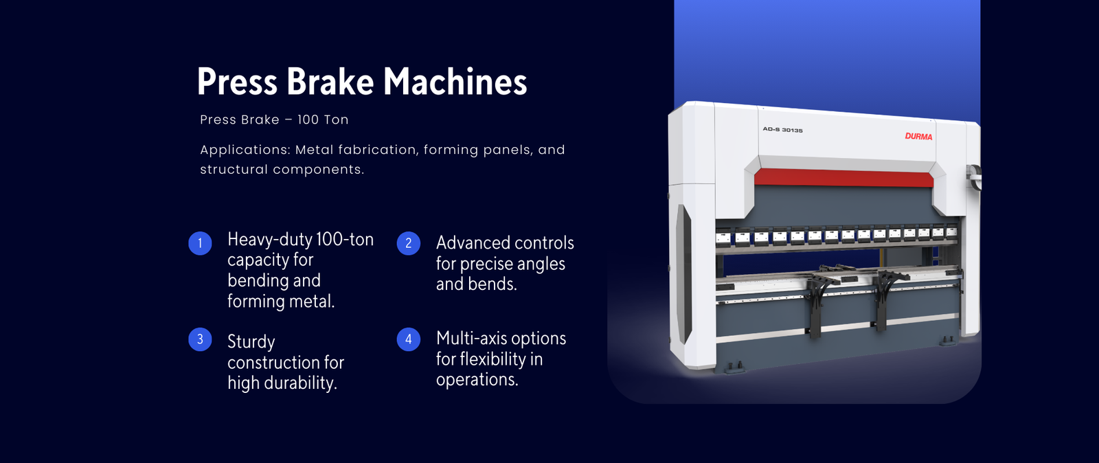 100-ton press brake for precise bending & structural components.