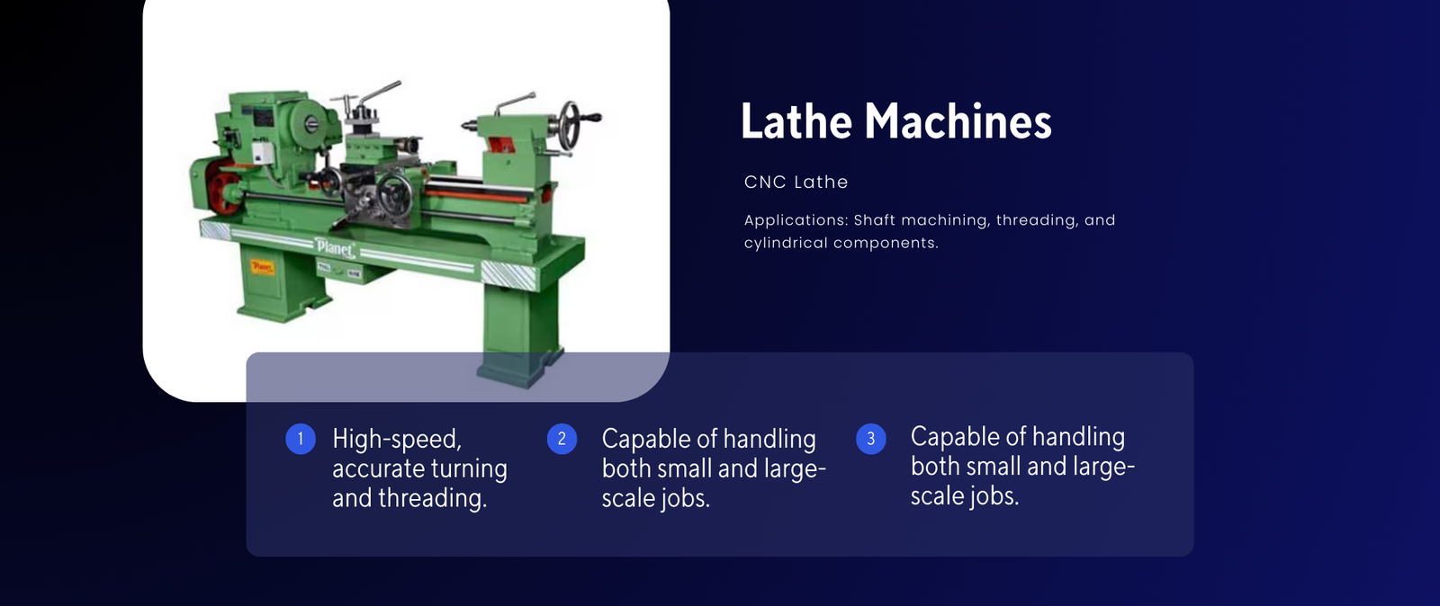 VMC, lathe, milling & grinding.