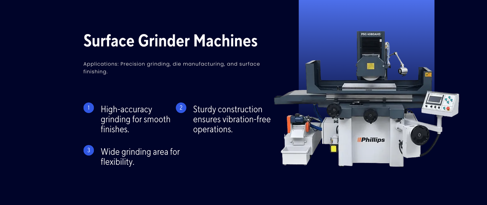 Press brakes, CNC lathes, VMCs, EDM machines, surface grinders, and more for comprehensive industrial solutions.